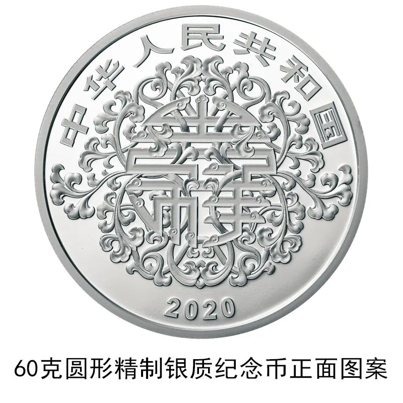 60克圆形银质纪念币为精制币,含纯银60克,直径40毫米,面额20元,成色99.9%,最大发行量20000枚。